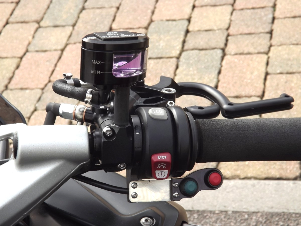 Custom built trike for it’s owner. The Casarva BMW K1300R IRS trike shaft drive conversion is bolted to the bike frame. The customer required twin levers on the right hand side to operate both the clutch and front brake. As a result we fitted PFM twin brake levers which have the levers on a single plane. Another requirement was a Kliktronic gear shifter with buttons also on the right hand. So an uprated Kliktronic unit to deal with the BMW quick shifter fitted to the trike.