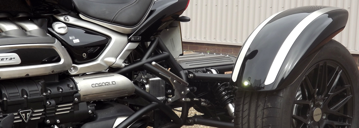 This was in addition to making an independent rear suspension trike conversion to bolts to the bike’s frame that also followed the design features of the bike and designing a set of raked from yokes to make the steering effort lighter