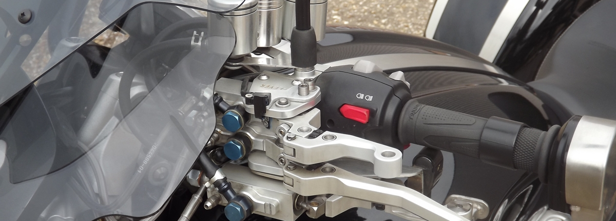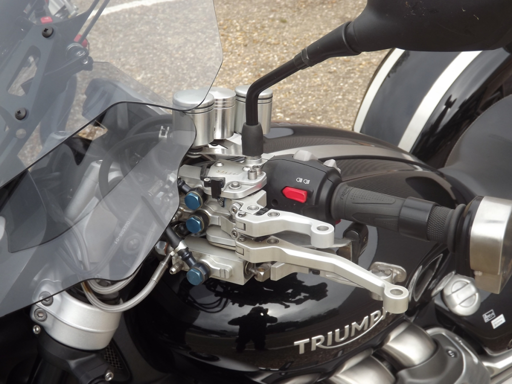 So we moved the throttle to the left made a thumb brake for the front brakes, twin levers to operate the clutch and the rear brakes and an electronic gear shifter to changes gear. All of which needs to be accessible and usable immediately.